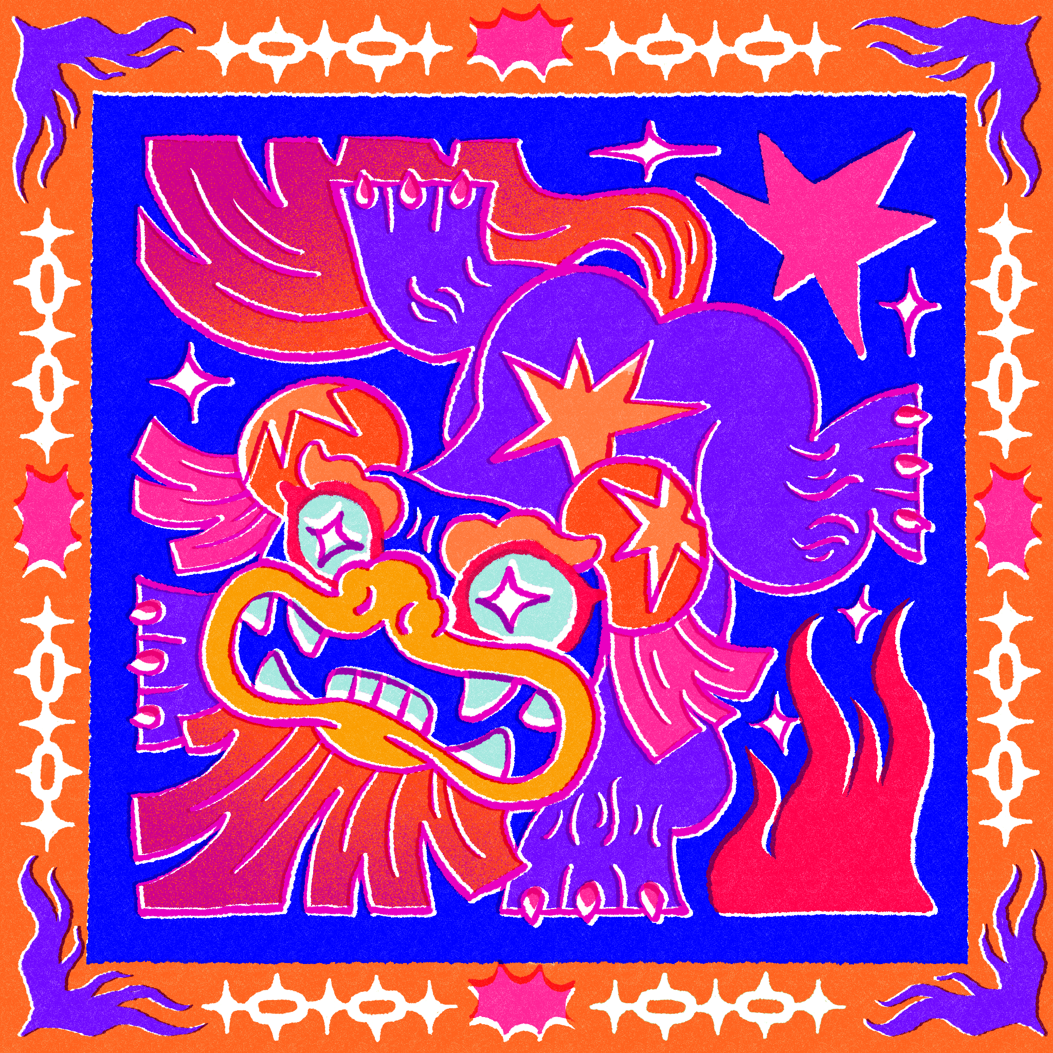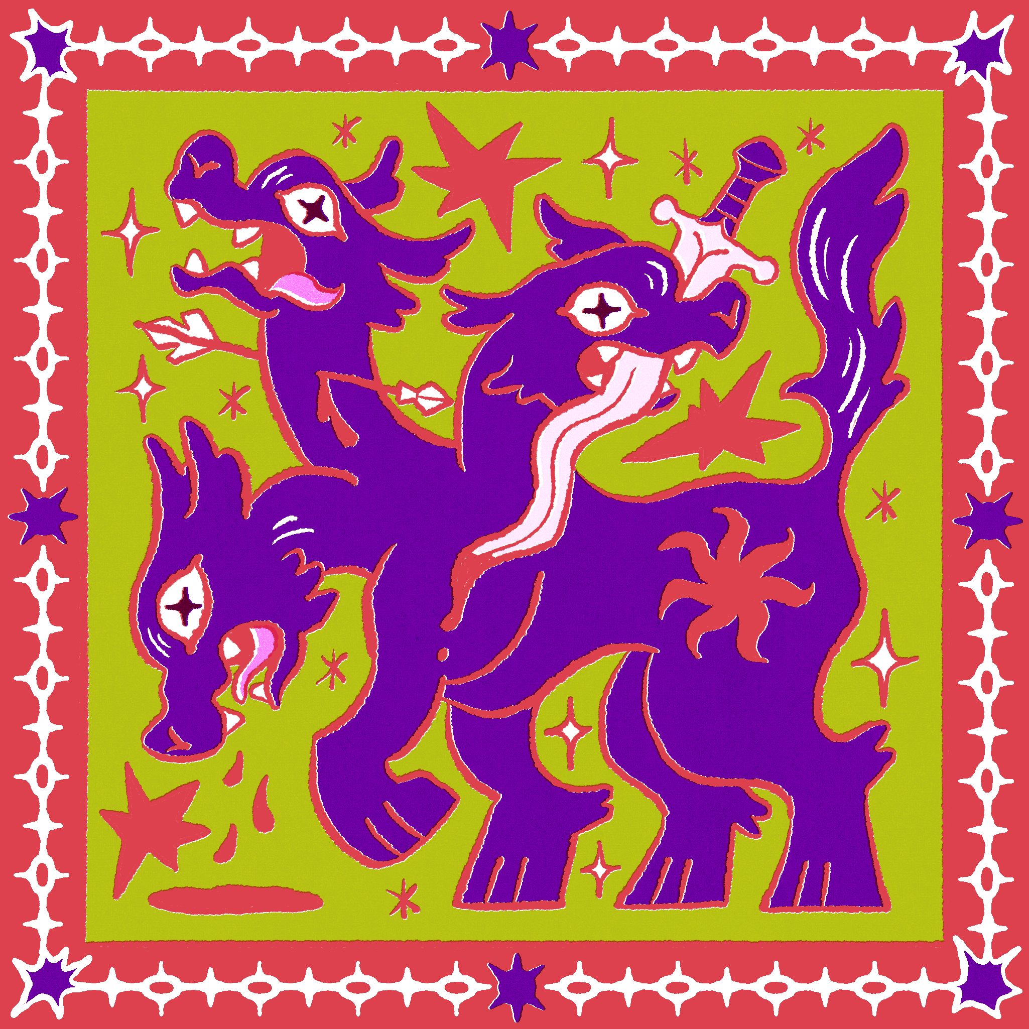 My art collection draws inspiration from a tapestry of global mythologies, each rendered in bold, vibrant colours that immortalise them in a world on the edge of forgetting. Many of them are depicted under duress, wounded, isolated, or on the brink of extinction trying to survive. These mythological icons aren’t just relics of the past but survivors, trying to adapt, to hide, to endure in a world that’s moved on.